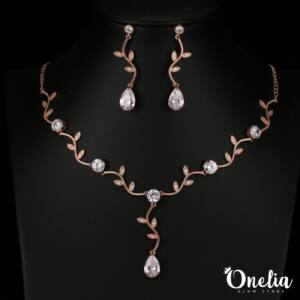 Set ERIDANI – Collar y aretes oro rosa con piedras en color natural – Onelia