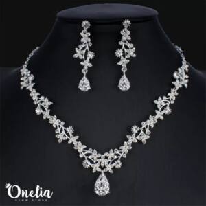 Set LUNA – Collar y aretes plateado con piedras en color natural – Onelia