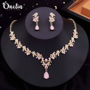 Set LYRA – Collar y aretes dorado con piedras rosa bebé – OneliaRead more