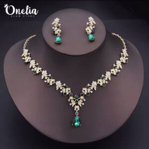Set LYRA – Collar y aretes dorado con piedras verdes – OneliaRead more