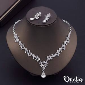 Set ARIEL – Collar y aretes plateado con piedras en color natural – OneliaRead more