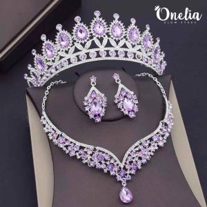 Set tiara LETIZIA + aretes y collar ALHENA – Plateado con piedras lilas – OneliaRead more