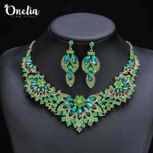 Set MIRANDA – Collar y aretes dorado con full piedras verde esmeralda y manzana – OneliaRead more