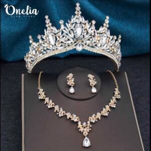 Set tiara ESTELLE + aretes y collar LYRA – Dorado con piedras en color natural – OneliaRead more
