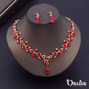 Set ADHARA – Collar y aretes dorado con piedras rojas – OneliaRead more
