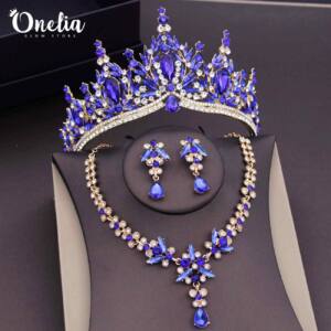Set tiara ESTELLE + aretes y collar BIANCA – Dorado con piedras azules – OneliaRead more