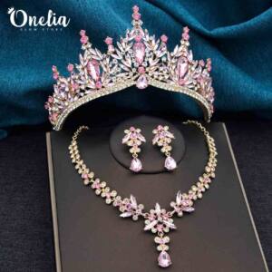 Set tiara ESTELLE + aretes y collar BIANCA – Dorado con piedras rosadas – OneliaRead more