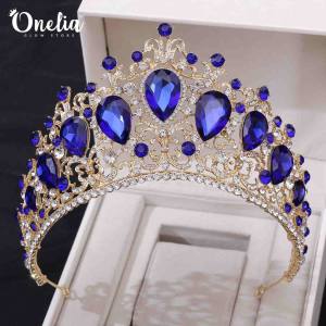 ALEXIA – Tiara dorada con piedras azules 10.5cm alto – Onelia