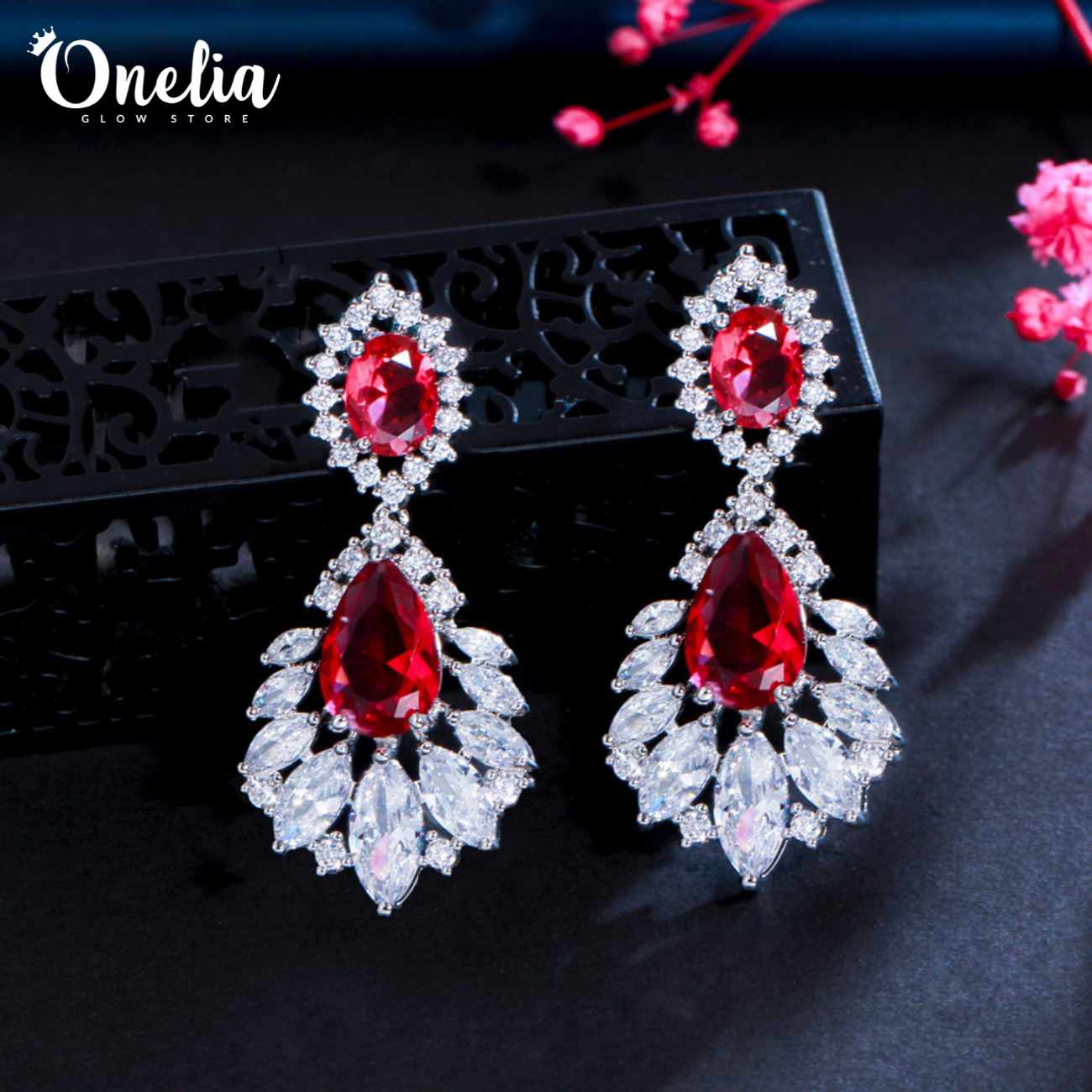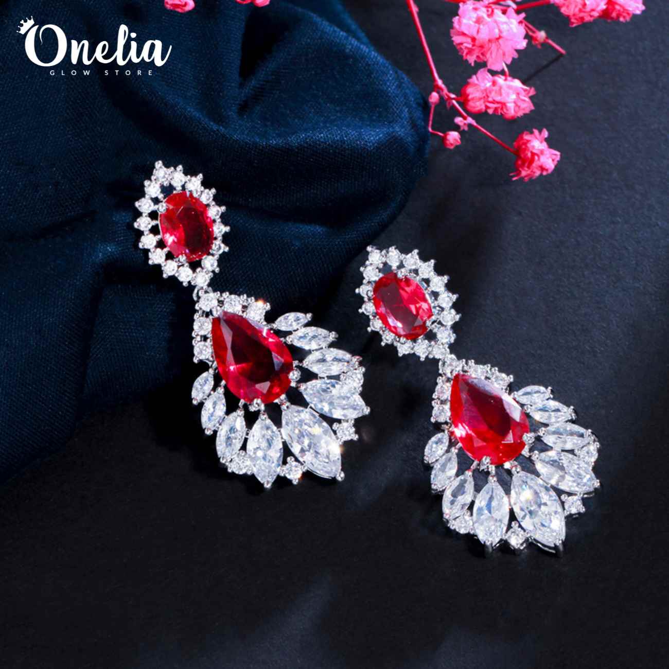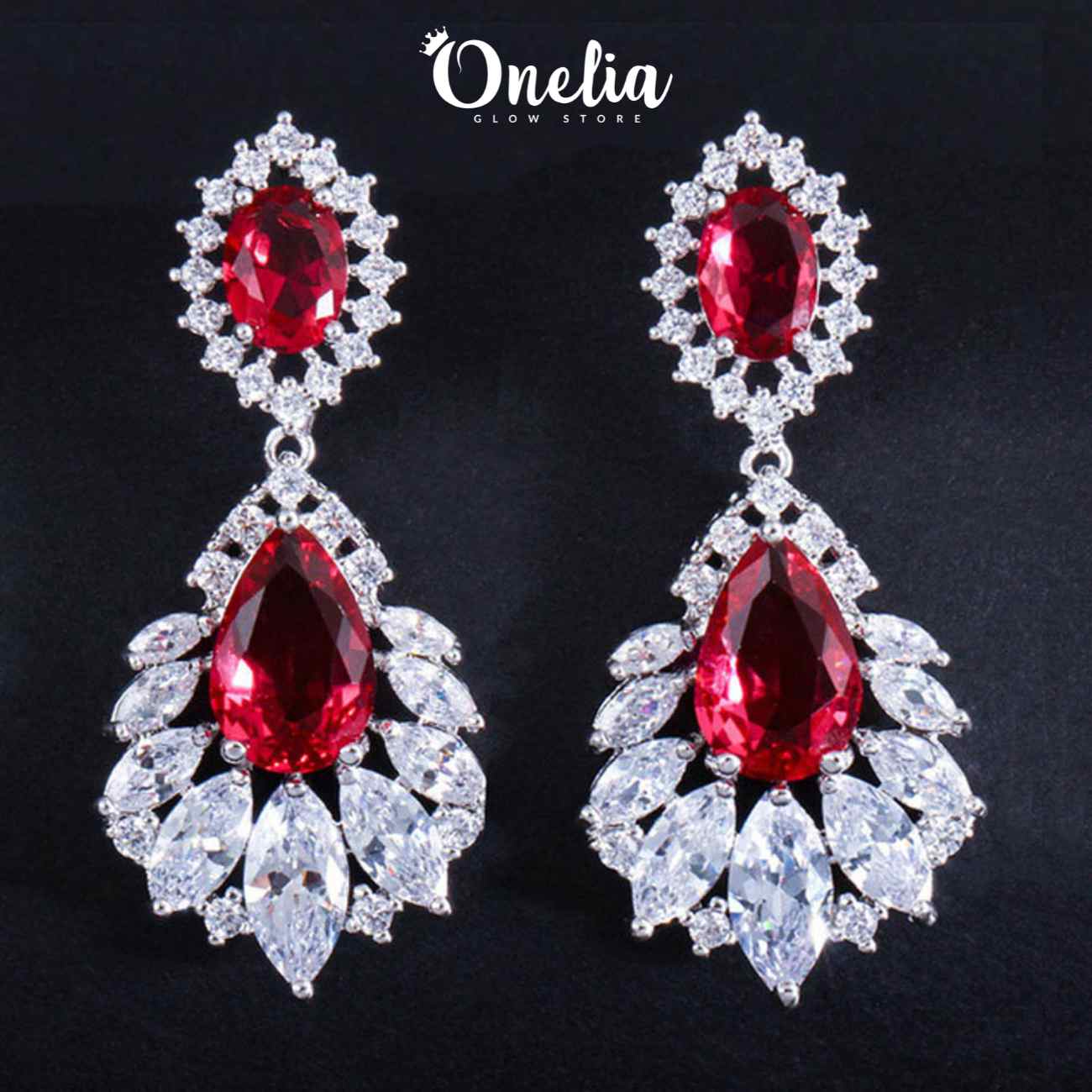 / CLEO – Pendientes plateado con zirconia roja – Onelia