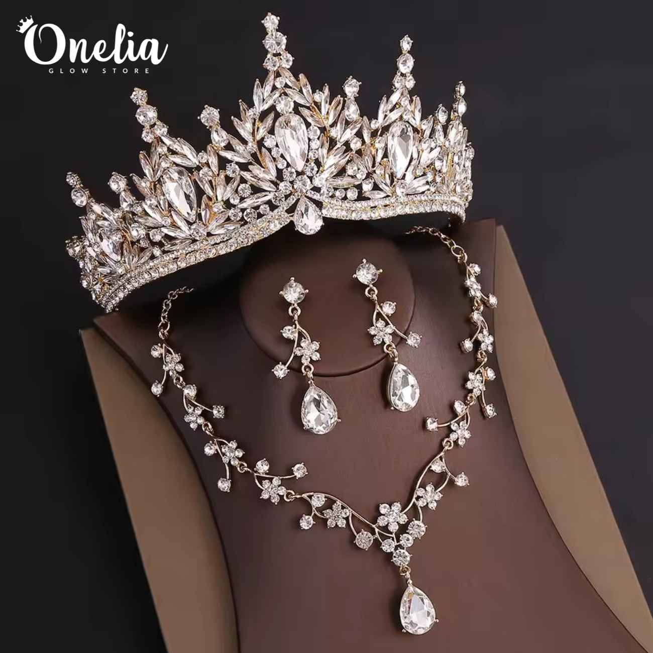 Juego completo: Corona, collar y aretes - Línea Onelia