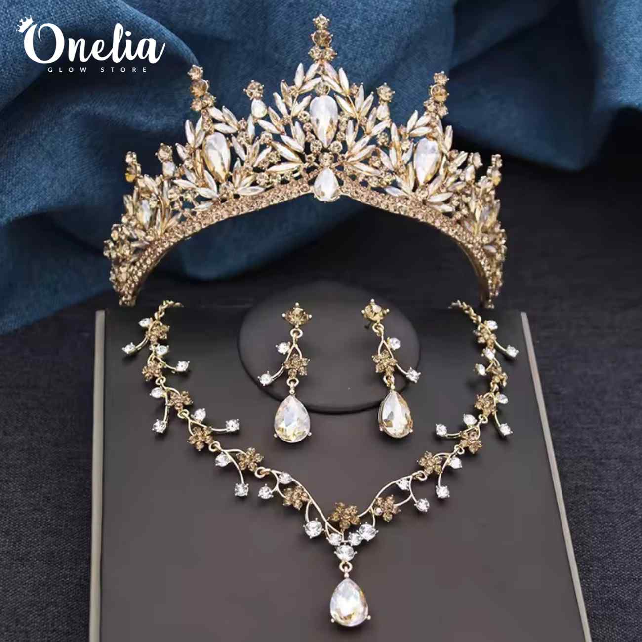 Juego completo: Corona, collar y aretes - Línea Onelia