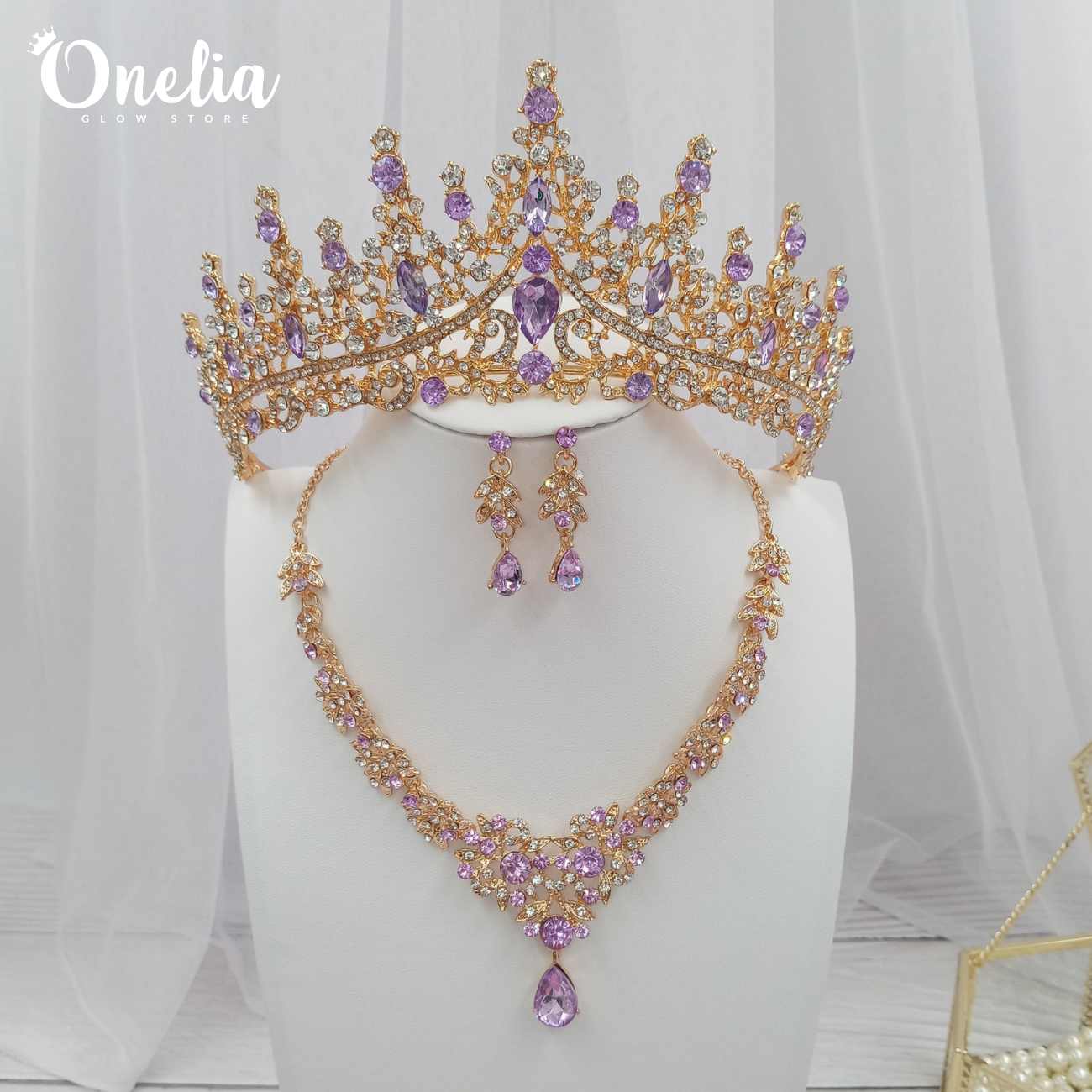 Juego completo: Corona, collar y aretes - Línea Onelia