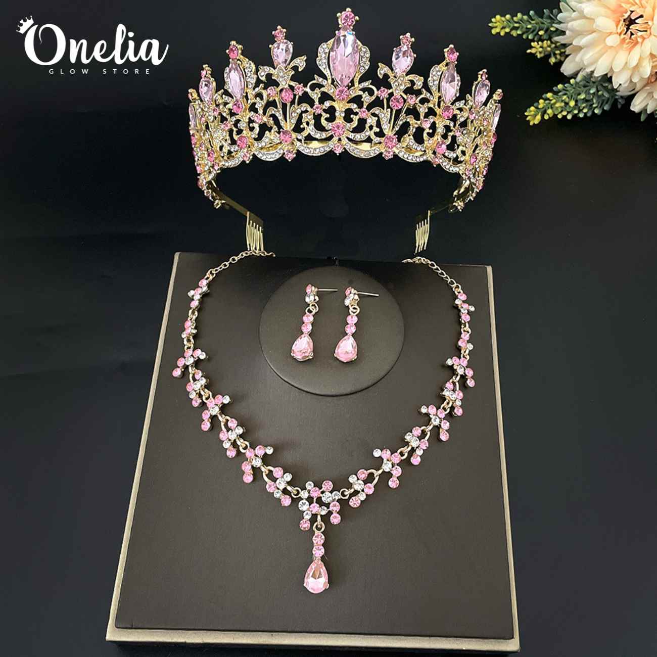 Juego completo: Corona, collar y aretes - Línea Onelia