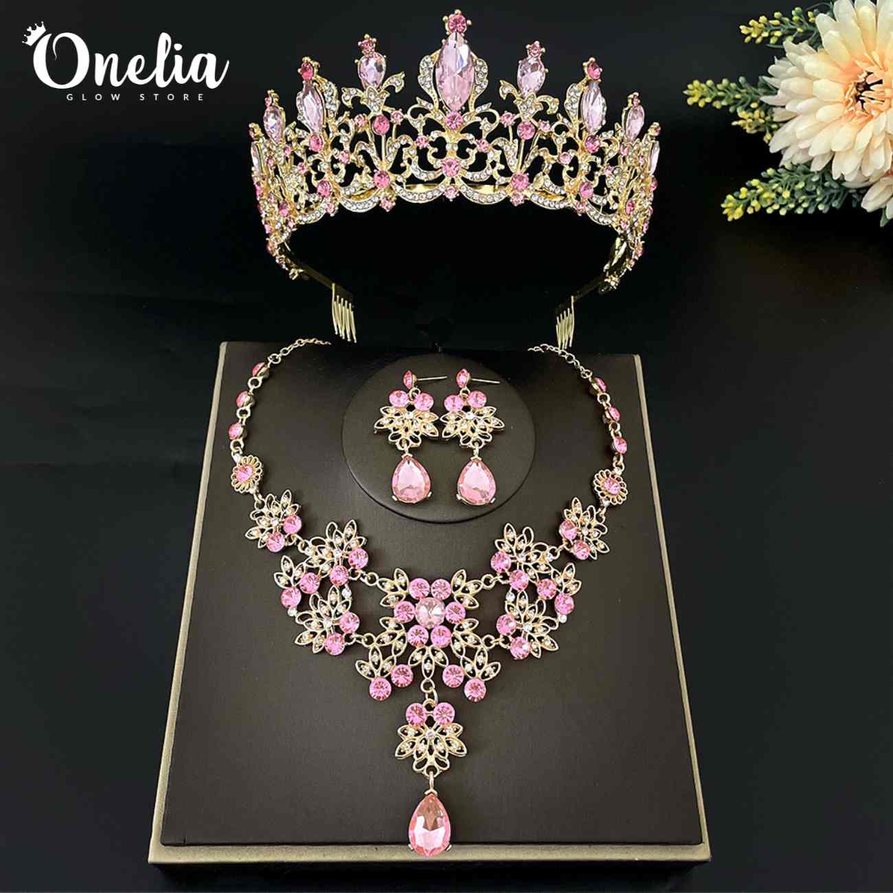 Juego completo: Corona, collar y aretes - Línea Onelia