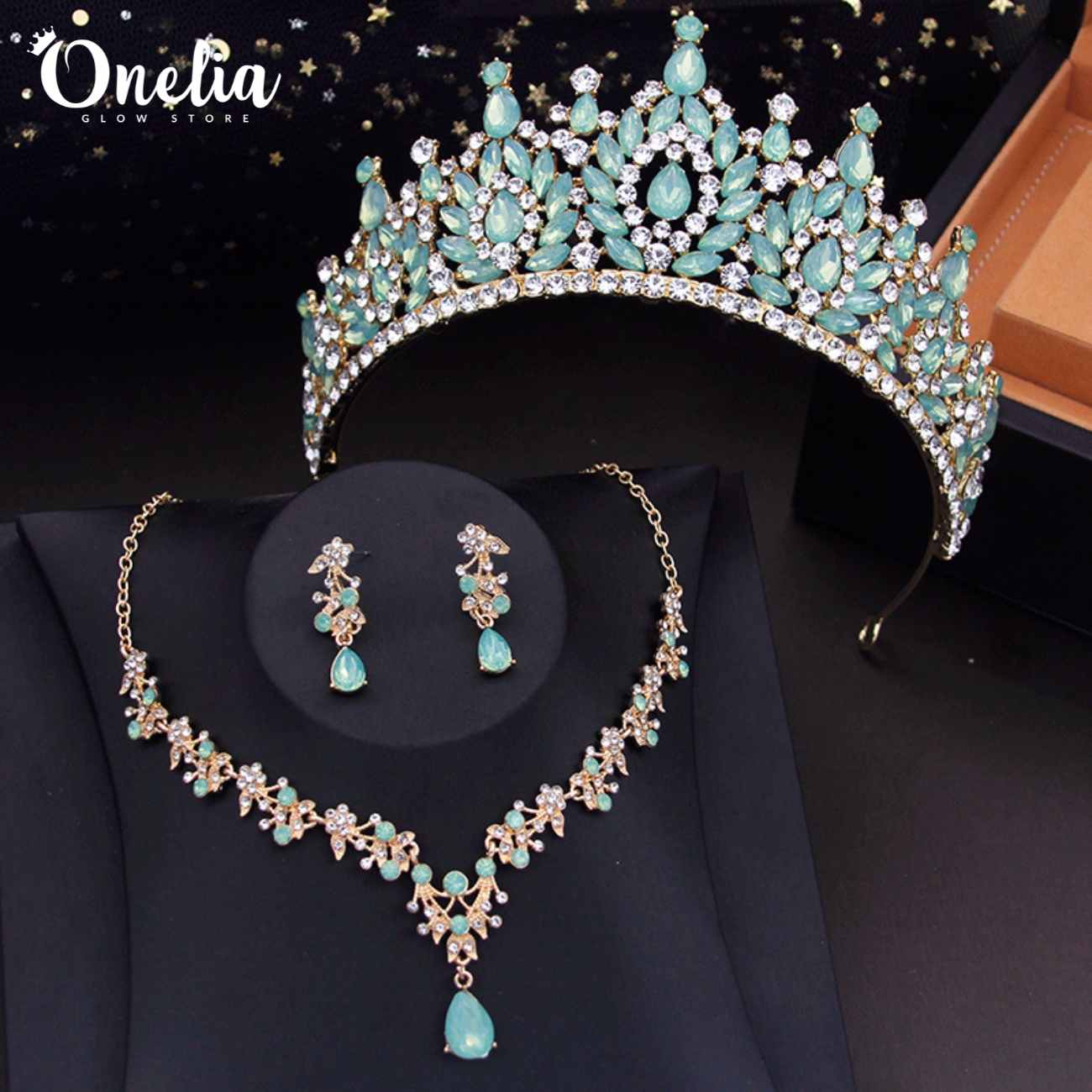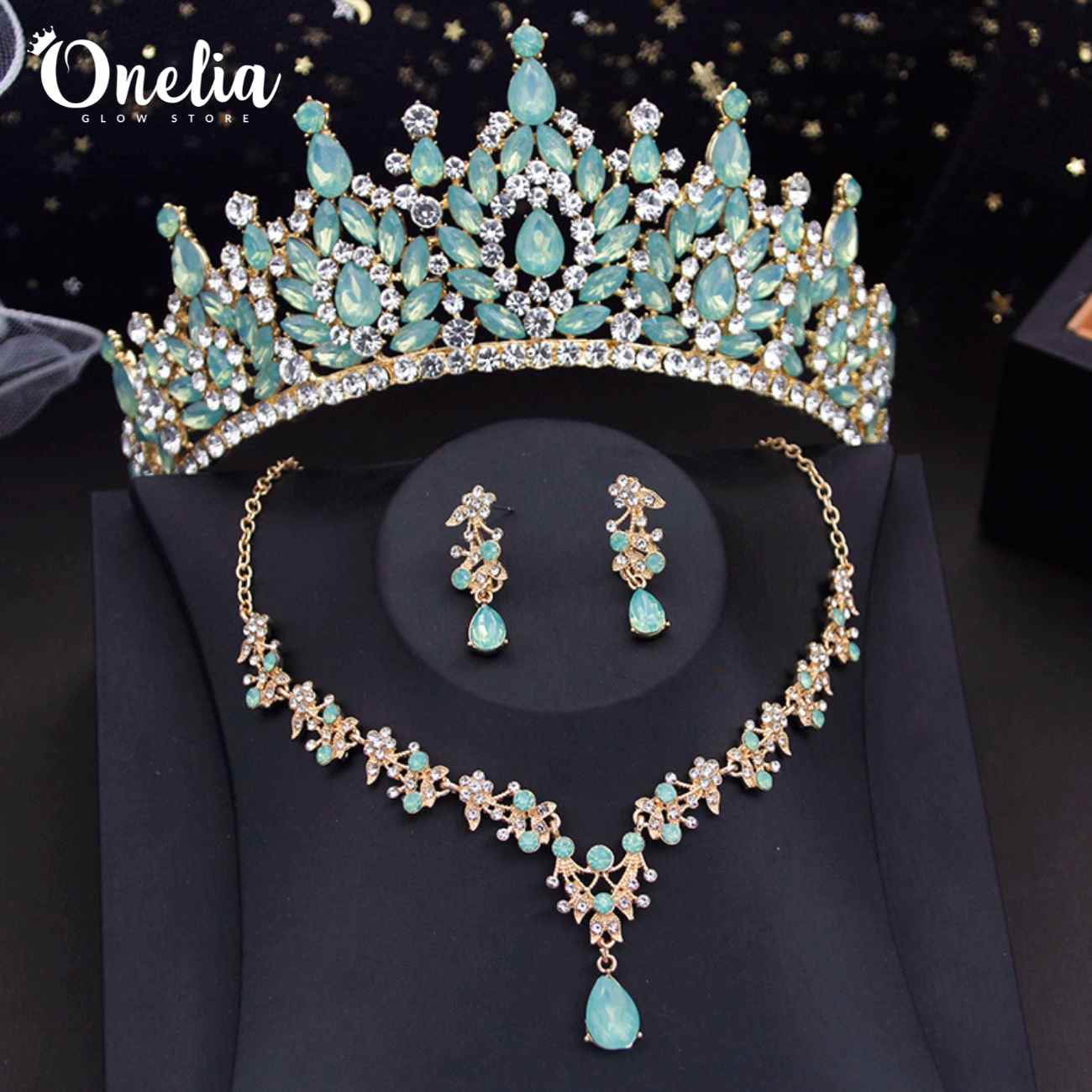 Juego completo: Corona, collar y aretes - Línea Onelia