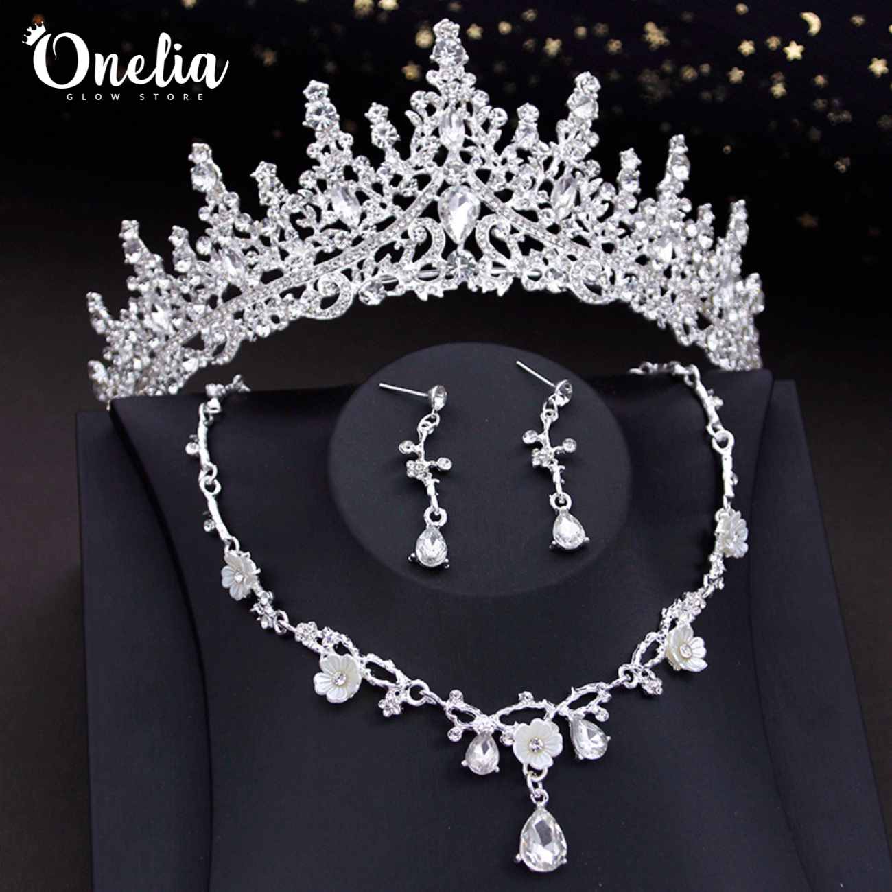 Juego completo: Corona, collar y aretes - Línea Onelia