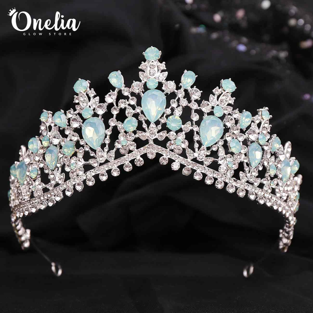 CATALINA – Tiara plateada con piedras verde agua 6cm alto - Onelia