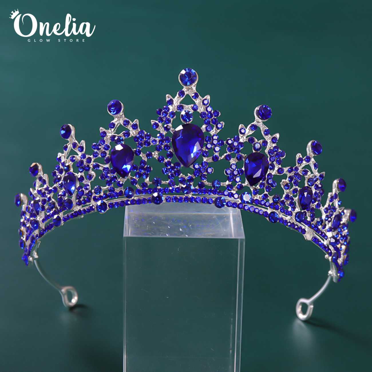 / ASTRID – Tiara plateada con full pedrería de cristales azules 5.4cm alto – Onelia