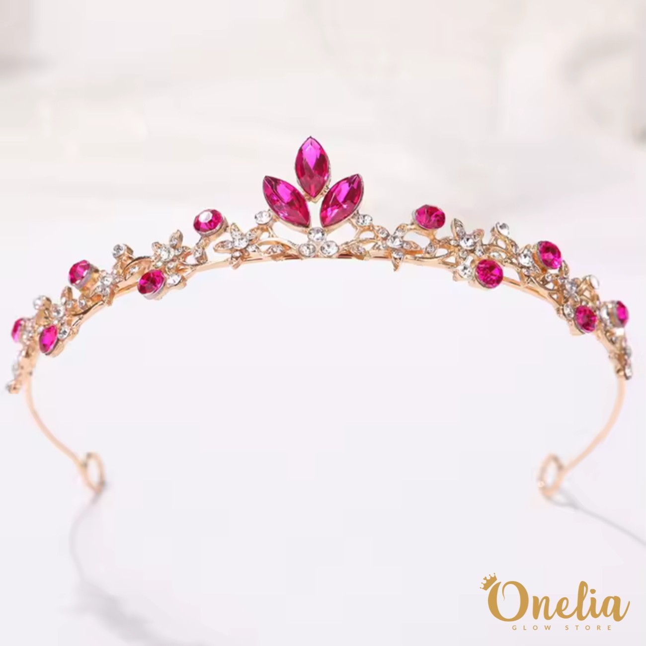 MARJORIE – Tiara dorada con pedrería de cristales fucsias 2.9cm alto - Onelia
