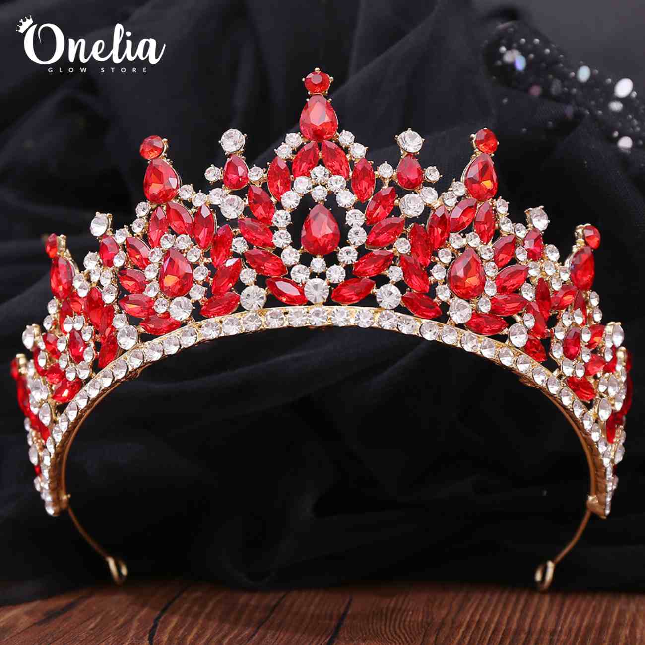ARIADNA – Tiara dorada con piedras rojas 7cm alto - Onelia